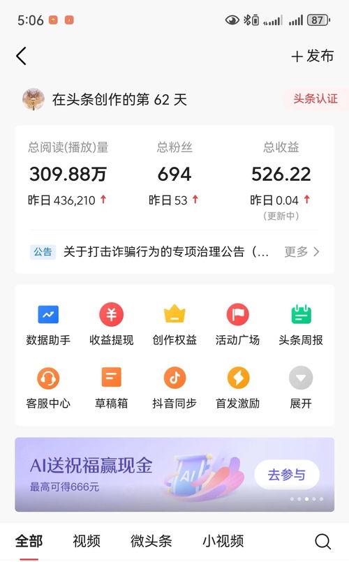 头条APP的浏览量变化,就像是一面镜子,折射出当下社会的热点和趋势。通过分析这些变化,我们可以更好地了解读者的需求,从而写出更加受欢迎的新闻。那么,你准备好迎接这个挑战了吗?让我们一起努力,成为那个让读者爱不释手的新闻创作者吧!